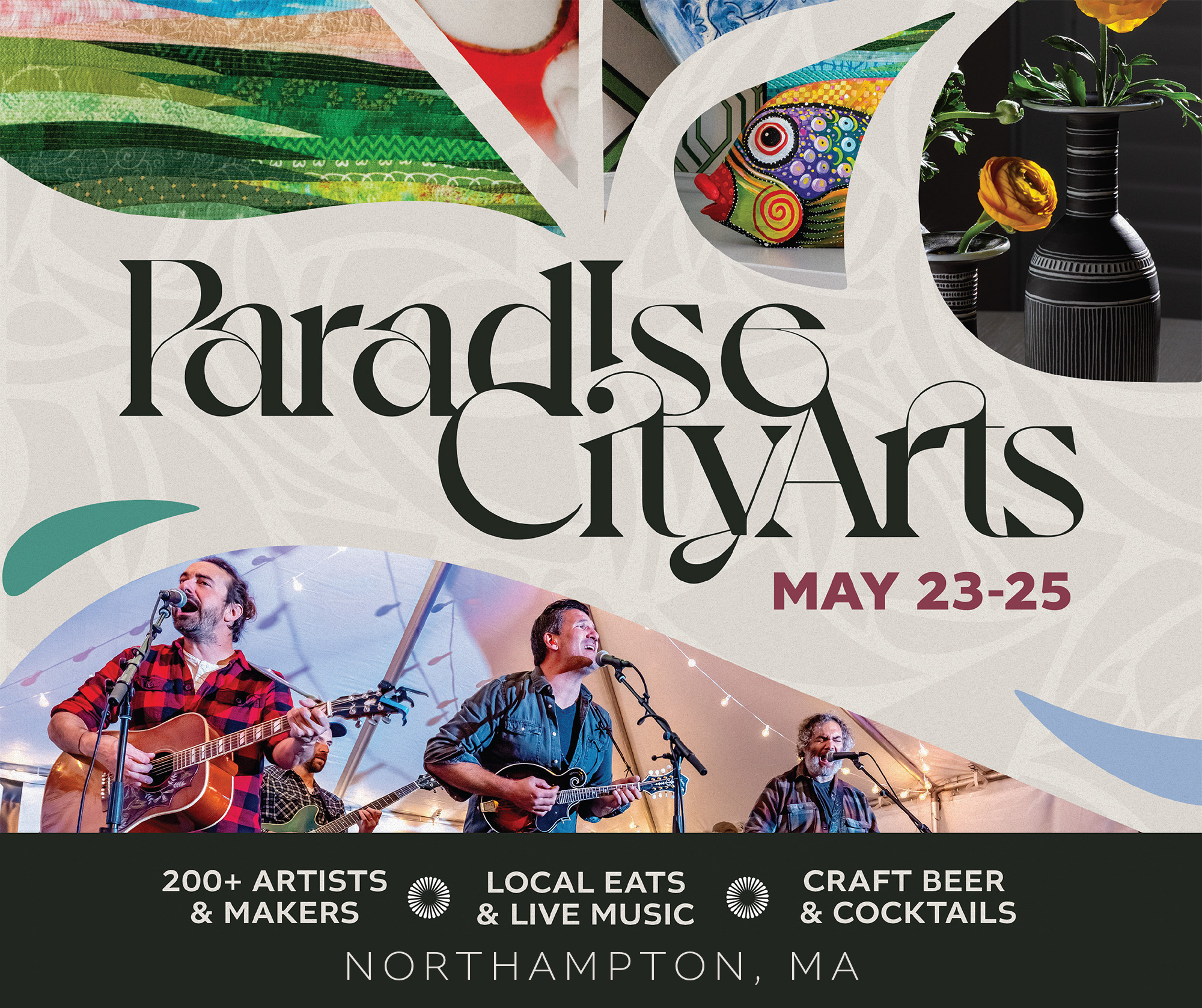 Paradise City Arts, founded in 1995, produces New England’s most celebrated shows of contemporary craft and fine art. Welcome to a world overflowing with fresh ideas for home decorating, personal adornment, one-of-a-kind gifts and building a collection. Discover work in furniture, jewelry, art glass, garden sculpture, ceramics, fashion design, painting and more, all made by Paradise City Arts artists in their studios just for you.