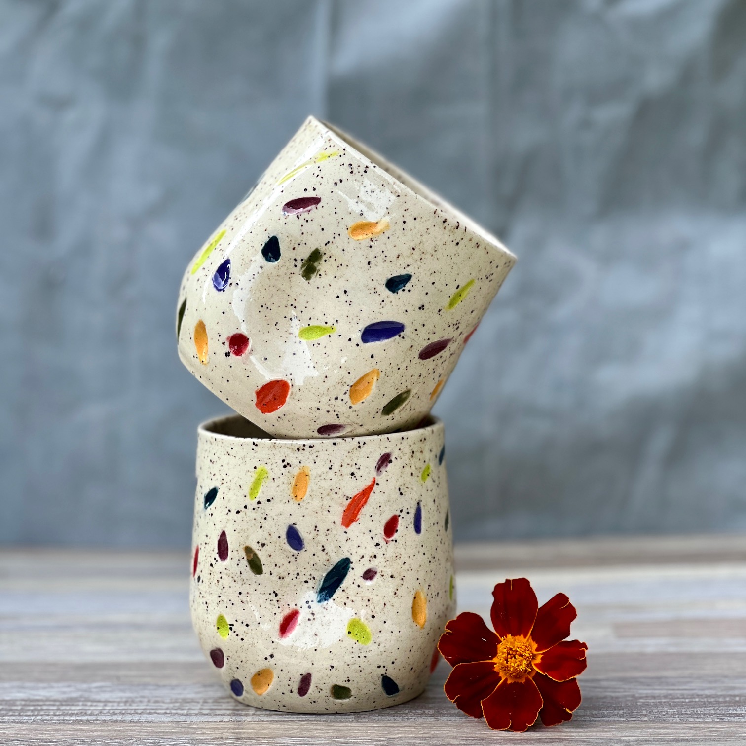 Rusted Wheel Pottery is about taking a moment to deliberately stand still and observe: the comfort, tranquility, playfulness, the strangeness or comfort of different handmade pots. All the pieces are relatives but not twins. Each piece is hand carved or hand stamped, so variance is a natural occurrence.