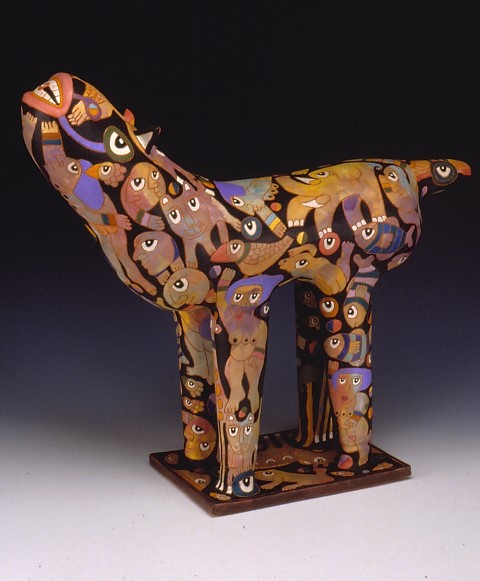 Washington Ledesma’s colorful ceramic pieces, joyful animal sculptures and healing stones are easily recognized by the prominence of eyes, the ‘mirrors of the soul.’ He carries this theme into his paintings, which he hangs side-by-side with his ceramic works. A native of Uruguay, he began his art career in New York City and now lives on Martha’s Vineyard Island.