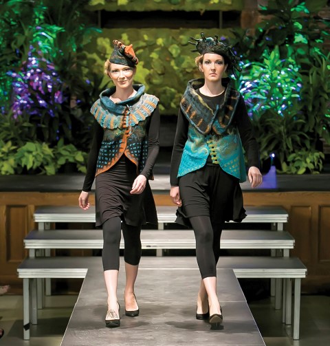 “One-of-a-Kind Nuno Felt Collection” on the runway at Electric City Fashion Show, Saratoga Srings, NY April 2016. Pictured is Arsenault’s “4-Way Vest”, hand-dyed and nuno wet-felted wool, silk and other natural fibers. Chestertown, NY 12817