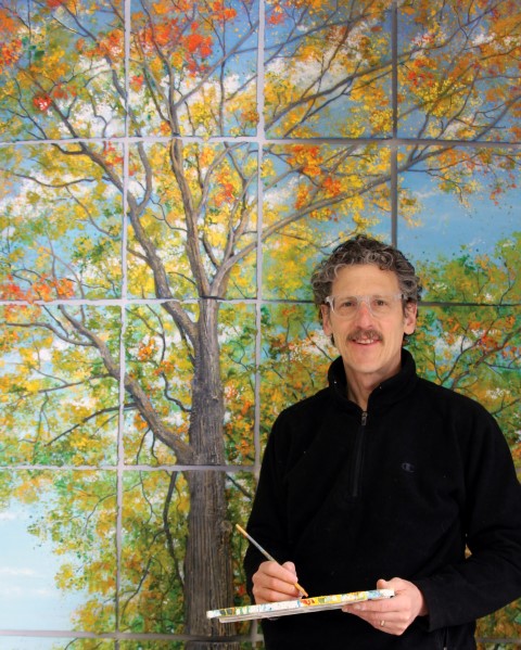 Rick Epstein’s clay landscapes are inspired by his love of Asian art and represent many locations in his native New England. He slices an image into separate components, constructing each section as a clay tile.