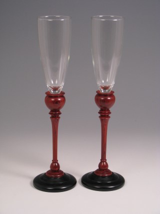 “Champagne Goblets”, handturned, cocobolo and ebony. 13″h.