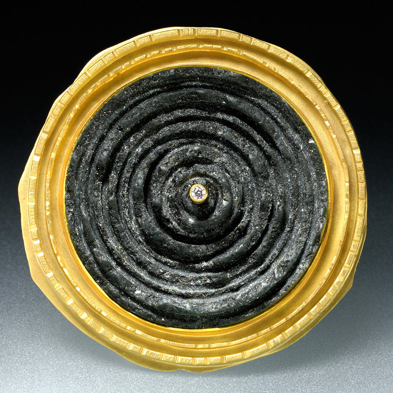 “Circle Brooch” – hand-cut stones set in 22K gold, hand-fabricated.