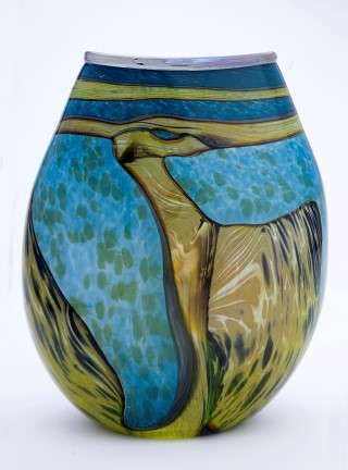 Glassblower Henry Levine writes, “Inspired by ancient Roman glass, I strive to create work that is both beautiful and useful in which the color, pattern and shape are balanced. I use a rich medley of colors that glow with translucency and create a sense of depth. Recurring themes in my work are repeated patterns and applied motion.”