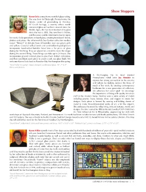 workshops at Haystack Mountain, Penland, and Arrowmont. Her work has been included in two Lark Books publications, 500 Metal Vessels