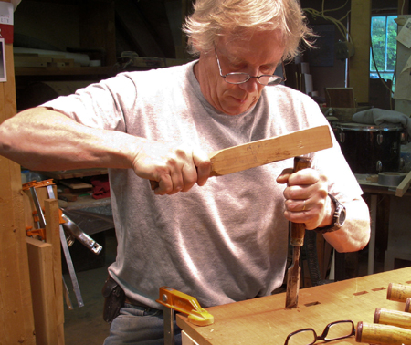One of Paradise City’s original exhibitors 20 years ago, Michael Hoy specializes in beautifully constructed, highly functional furniture, inspired by Mission and Shaker aesthetics. The wood surfaces of his maple and cherry kitchen tables gleam, and the matching chairs have handwoven cotton seats and backs.