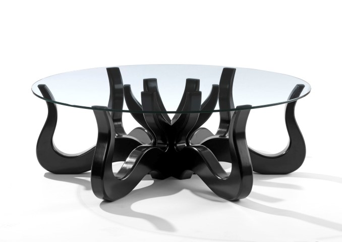 “Octopus Table”: Ebonized Birchwood and Glass; 48″diameter x 16″