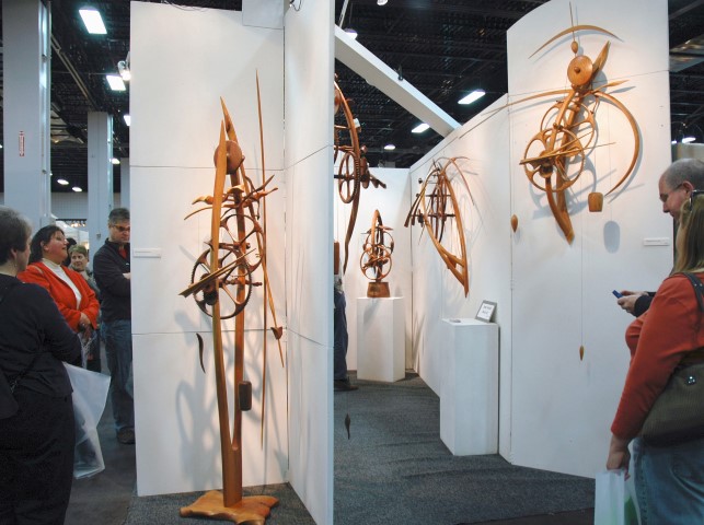 You’ll see awesome things you’ve never seen before at the Paradise City Arts Festival in Marlborough! Carved and lathed from Midwestern hardwoods, James Borden’s kinetic sculptural “Timeshapes”, keep perfect time due to a balance of pulleys and weights, and range from 5 feet long to more than twenty feet tall.