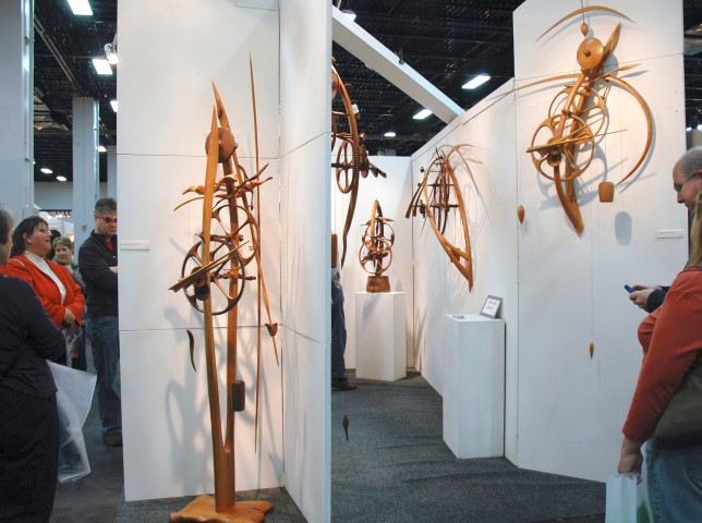 You’ll see awesome things you’ve never seen before at the Paradise City Arts Festival! Carved and lathed from Midwestern hardwoods, James Borden’s kinetic sculptural “Timeshapes”, keep perfect time due to a balance of pulleys and weights, and range from more than twenty feet tall, to tabletop size. Borden returns to the Northampton show after a four-year hiatus.